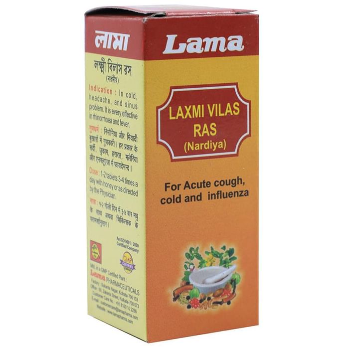 Lama Laxmi Vilas Ras (Nardiya) Lama Laxmi Vilas Ras is an ayurvedic remedy which is useful in relieving cough,cold and rhinitis. It is also helpful in relieving headache, sinus problem. acute cough and influenza can also be relieved by its usage.