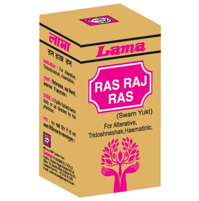 Lama Ras Raj Ras (Swarn Yukt) Tablet Lama Ras Raj Ras (Swarn Yukt) Tablet is formulated to facilitate aid in the case of paralysis, hemiplegia, locked jaw, facial palsy. The tablet assists in strengthening the nerves and muscles. In addition to this, it is helpful in the case of hearing defects, dizziness, and such other diseases caused due to Vata imbalance.