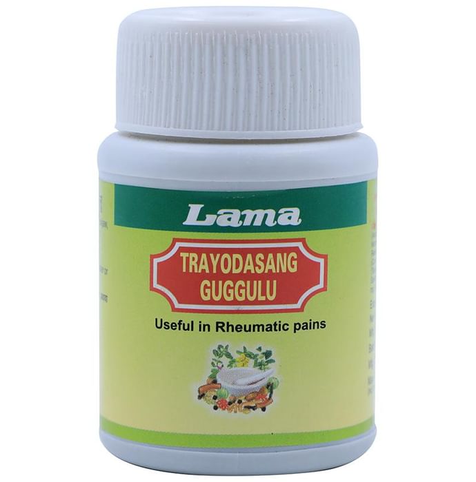Lama Trayodasang Guggulu Tablet Lama Trayodasang Guggulu Tablet aims to provide aid in the treatment of rheumatoid pains. The product is beneficial in the case of lockjaw, pain in arm, knee and bone narrow disorder.
