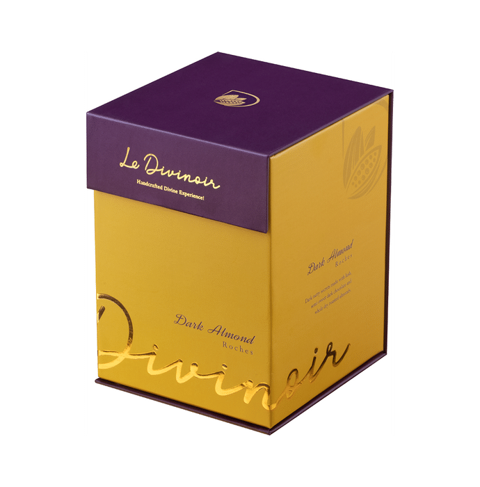Le Divinoir Handcrafted Pure Classic Dark Almond Roches Crafted for the connoisseurs of the dark, our Dark Almond Roches are made with lush single-origin cocoa and the finest whole roasted Californian almonds, for a rich and exuberant taste experience.You can gift this elegant box of pure and tempting dark almond Roches to mark the special moments of friendship, family, love and joyful celebration. The rich and crunchy flavour of the Roches is sure to bring a sense of fulfilment. Inside the elegant box are 20 to 24 pure delights of vegan and gluten-free dark almond Roches that encompass a divine and decadent experience. Each Roche has 40% of whole roasted almonds and 60% of pure chocolate. Embrace the arresting savour with each scrumptious bite of the handcrafted pure dark almond Roches and lose yourself in awe. | Key Ingredients: Almond Sugar Cocoa Solids Cocoa Butter Emulsifiers (INS322(i), INS476) Contains nature-identical vanilla flavouring | Key Benefits: Each Roche has 40% of whole roasted almonds and 60% of pure chocolate Made with single-origin cacao and whole roasted Californian almonds The crunchy texture and rich flavour is an absolute delight to your taste buds Made without the use of any vegetable fat | Directions For Use: Ready to eat delectable treats. | Safety Information: Store in a cool and dry place away from direct sunlight Keep out of reach of children Read the label for allergen information