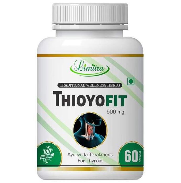 Limitra Thioyofit 500mg Capsule Limitra Thioyofit 500mg Capsule provides relief from stress commonly experienced with thyroid malfunction. It posesses anti inflammatory properties, reduces body aches and reduces skin as well as other allergies experienced due to thyroid malfunction. It also reduces hyper-sensitivity associated with thyroid malfunction. It activates the under-active thyroid gland. It works to stabilize the TSH levels and bring them within the accepted range.