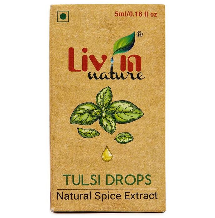 Liv In Nature Tulsi Drop is described in Ayurveda as the 'incomparable one'. It is considered to be a symbol of fidelity and helps in attaining spiritual enlightenment. Tulsi is mainly Kapha-reducing but it also helps to pacify Vatta and Pitta. Besides, it is rich in nutrients such as vitamin A, calcium, iron and zinc. Tulsi is also known to boost the immune system and improves energy levels. | Key Ingredients: Tulsi Extract (Oleoresin) Permitted Emulsifier (E433) | Key Benefits: Boosts the immune system Improves energy levels in the body Protects the skin against ageing Balances the stress hormone | Directions For Use: Step 1: Shake well Before use Step 2: Squeeze 1-2 Drops In a ready cup of tea or any food Step-3: Stir well and enjoy the goodness of nature with every sip | Safety Information: Read the label carefully before use Store in a cool and dry place away from direct sunlight Keep out of reach of the children