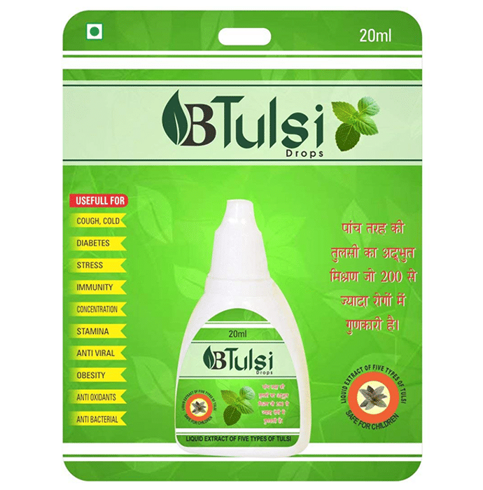 Livebasil Tulsi Drop Livebasil Tulsi Drop is a 100% natural liquid extract made from five types of Tulsi, which enhances immunity, and is effective in treating cough, fever, allergies, and cold.