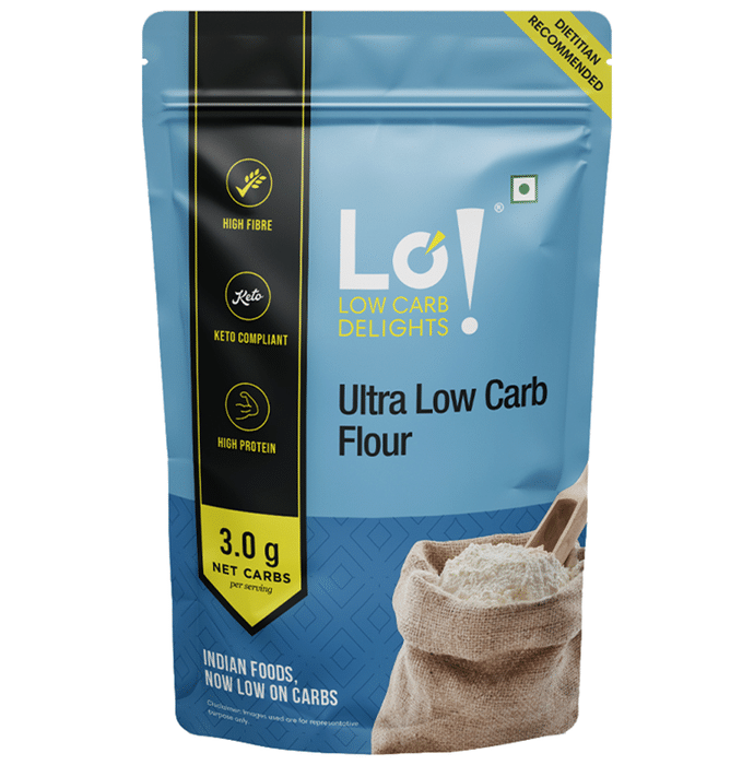 Lo! Foods Ultra Low Carb Flour is made with super seeds formulation which makes it ultra-low-carb, as well as high on fibre and nutrients. It is perfect for a Keto Diet along with Paleo Diet, Atkins Diet and Vegan Diet. | Key Ingredients: Seeds mix (Sunflower, Flax, Melon, Pumpkin) Groundnuts Isolated Wheat Protein Defatted Soy Flour Wheat Flour (Atta) Defatted Coconut Flour Almond Flour | Key Benefits: 3gms Net Carb: The Superfoods seeds formulation of the Keto Flour Low Carb Atta makes it Ultra Low Carb, as well as high on fibre and nutrients. It is perfect for a Keto Diet along with Paleo Diet, Atkins Diet and Vegan Diet Formulated for Keto diet - The Lo! Keto flour for Keto diet has been tested using blood and urine ketone meters by practitioners to show that you remain in ketosis. This makes them perfect for making Keto Diet snacks along with diabetes or diabetic snacks Used by professionals: The Keto Atta Flour is used by homemakers and professional chefs, due to its superior taste and texture. No after taste or smell. You can make Keto food products like parathas, rotis, cookies, keto bread and more | Directions For Use: No need to use warm water or give 10-15 minutes of resting time Make the dough and cook as you do with regular atta, and you get great soft and puffed up rotis and fulkas | Safety Information: Read the label carefully before use Keep out of reach of the children Store in a cool dry place
