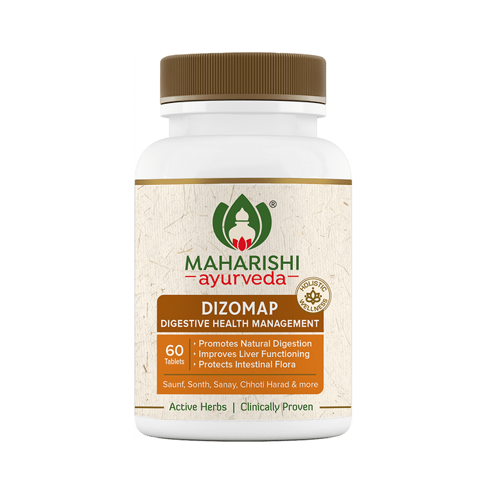 Maharishi Ayurveda Dizomap Tablet Maharishi Ayurveda Dizomap Tablets are made from a synergistic combination of potent herbs such as saunf, saunth, harad, sendha namak, kapardak and bhasmthat that work at a fundamental level to improve digestion. It is an Ayurvedic remedy for chronic constipation. Dizomap balances the Samana and Apana Vata along with Pachaka Pitta and helps restore the digestive fire.