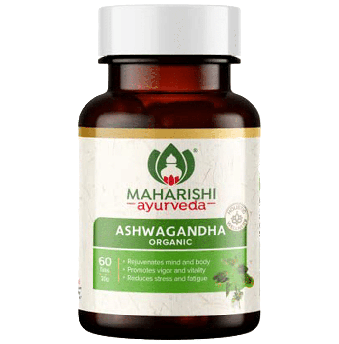 Maharishi Ayurveda Organic Ashwagandha Tablet Maharishi Organic Ashwagandha Tablet is enriched with the goodness of Ashwagandha, which has various health benefits. It is very effective in reducing stress and anxiety while promoting vigour and vitality. It calms the body down and provides relief from fatigue. It is enriched with antioxidants and protects the body from damage caused by oxidative stress.