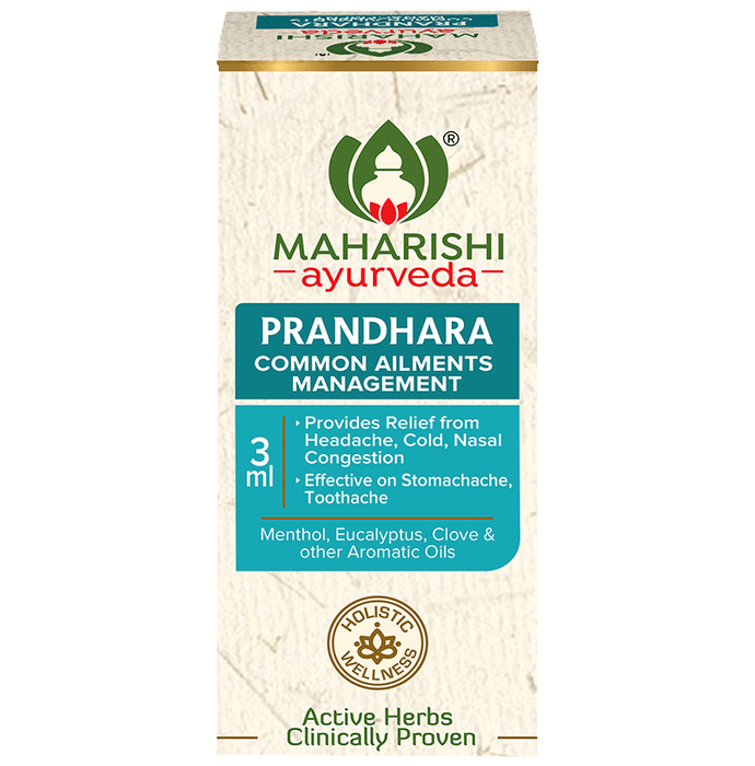 Maharishi Ayurveda Prandhara Drop Maharishi Ayurveda Prandhara is a synergistic combination of cinnamon, lavang, eucalyptus, bhimsaini camphor and ajwain oil that work at the fundamental level in managing multiple common ailments like cold, nasal congestion, stomach ache, vomiting and more. | Key Ingredients: Menthol Eucalyptus Clove | Key Benefits: Maharishi Ayurveda Prandhara is a synergistic combination of medicinal and aromatic oils that help in multiple everyday problems It effectively provides relief for cold, headache and nasal congestion This drop is beneficial against indigestion, stomach ache and vomiting It also soothes respiratory allergies and sinusitis and additionally can be used for toothache These drops are a natural remedy for insect bites and itching | Directions For Use: Use as directed on the label or as prescribed by the physician. | Safety Information: If you are pregnant or nursing, or have a known medical condition, consult your physician before taking this or any other medicine Store in a cool and dry place Keep away from the reach of children Do not exceed the recommended dosage