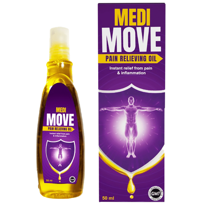 Medi Move Pain Relieving Oil Medi Move Pain Relieving Oil is pain-relieving oil with quick action on painful areas. It can relieve arthritis, back pain, shoulder discomfort, joint pain, sprain and muscular pain. It is made of organic ingredients and penetrates deep into the skin to relieve pain. It helps lower muscle stiffness and soreness.