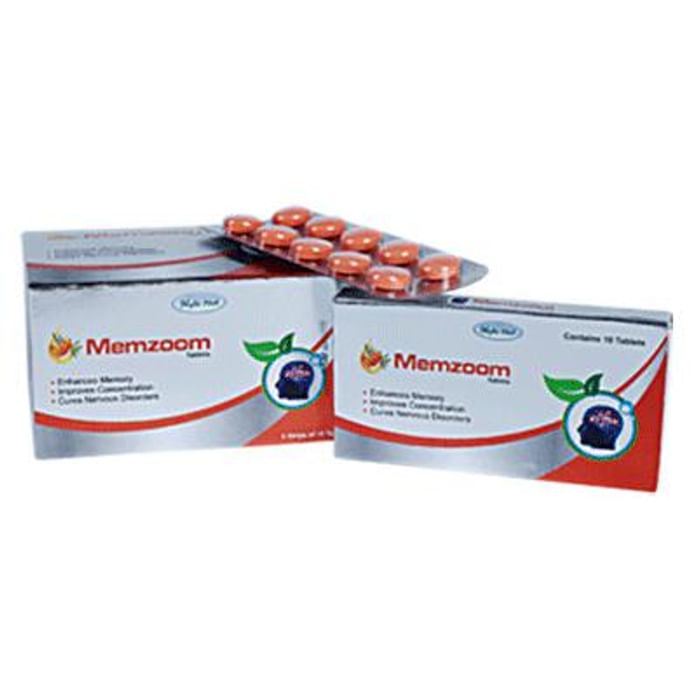 Memzoom tablet This medicine is used for the treatment of all diseases associated with Dementia. Vascular dementia, which occurs after a stroke, is the second most common dementia type. | Key Ingredients: Centella Asiatica Hippophae Rahmnoides Convulvulus pluricalis | Key Benefits: It is used in nervous debility, insomnia, fatigue, low energy level It is used medicinally in the form of decoction with cumin and milk in fever It helps in loss of memory and used as a brain tonic It is a sovereign remedy in bowel complaints especially dysentery | Directions For Use: As directed by the physician | Safety Information: Read the label carefully before use Keep it out of reach of the children Store in a cool and dry place away from direct sunlight Use under medical supervision