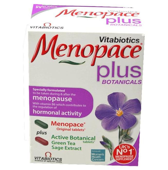 Menopace Plus Capsule Menopace Plus Capsule is a specially formulated food supplement containing Soya Isoflavones, Sage, Flaxseed Lignans, Green tea, meant for women during and after the menopause who are looking for even greater support. Soya is one of the richest natural sources of Isoflavones. Lignans are phytonutrients which occur naturally in flax and unrefined grains. Flaxseed has a natural lignan content that is more than 100 times higher than other plant sources. The extract used in Menopace Plus Capsule undergoes a patented partitioning process to provide 10-30 times more lignans. Benefits of Menopace Plus Capsule: Improves Overall Vitality & Well being: Provides Vitamins B1, B6 and B12, which contribute to the normal functioning of the nervous system. Maintains healthy Hormone Regulation During the menopause, levels of specific hormones can change. Menopace Plus Capsule contains vitamin B6 which contributes to the regulation of hormonal activity. Enriched with Co-factors for Bone Health Bone health is particularly important for women during the menopause which is why Menopace Plus Capsule contains magnesium, zinc and vitamin D3 which contribute to the maintenance of normal bones. Menopace Plus Capsule is designed to be taken in conjunction with a calcium supplement Maintaining heart and cardiovascular well being is especially important as we get older. Menopace Plus Capsule provides vitamins B6, B12 and folic acid which contribute to normal homocysteine metabolism, plus thiamin (vitamin B1) which contributes to the normal function of the heart. The convenient dual pack contains day marked blister sheets to help you remember to take both tablets each day. Use under medical supervision.