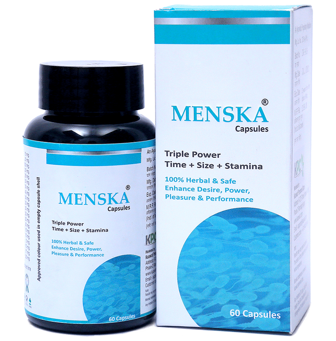 Menska Triple Power Stamina Booster Capsule (60 Each) Menska Triple Power Stamina Booster Capsule Menska capsules are helpful in boosting stamina, vitality and performance while also supporting physical training. It contains rare Indian herbs in one container, which are the main element in its unique ayurvedic recipe. Men can improve their stamina, strength, and performance by using all-natural substances. Menska capsules are a safe and effective ayurvedic medicine that contains twenty ancient rare ayurvedic herbs such as Kesar (Saffron), makardhwaj, ashwagandha, safed musli, kali Musli, kaunch beej, gokhru, lavang, jaiphal, Shudh shilajit, shankh pushpi and amber.
