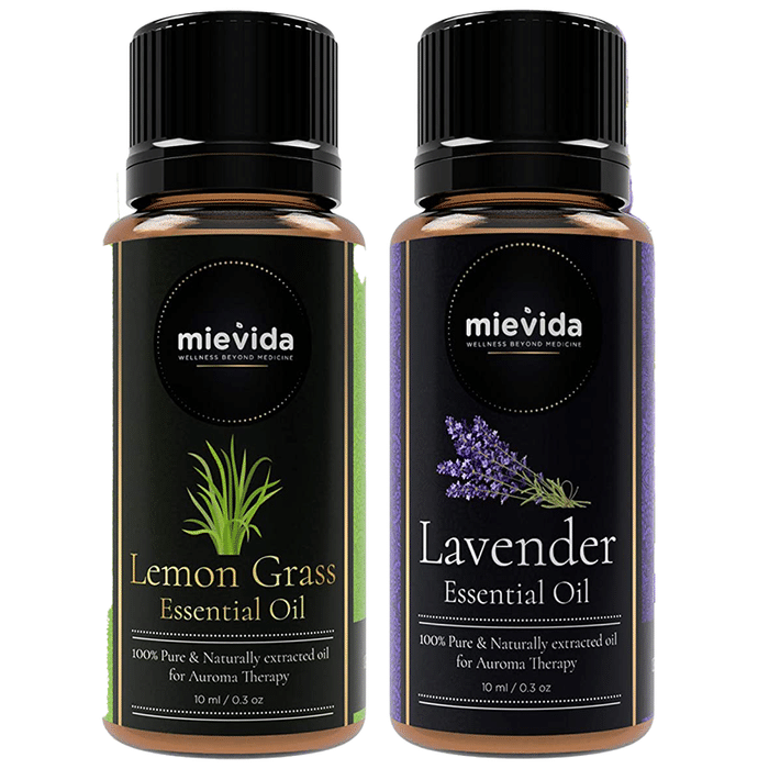 Mievida Lemongrass Essential Oil Mievida essential oil has multiple aromatherapies and topical uses, including skincare, haircare, massage and laundry products. All our oils are pure and naturally extracted and have therapeutic grades. A few drops in a humidifier or diffuser create a serene, moisturising aromatherapy mist in the home, office, or exercise space. It is a premium product for self-care as well as gifting. | Key Ingredients: Lemongrass essential oil | Key Benefits: It can manage oily skin, acne, enzyme and wrinkles It may improve ambience and relax the mood, thus managing sleep It contains natural antioxidant properties Lemongrass essential oil can remove impurities and detoxify the skin | Directions For Use: Use as directed on the label | Safety Information: Read the label carefully before use Store in a cool and dry place, away from sunlight Keep out of reach of children | Lavender Essential Oil Mievida Essential Oil has multiple aromatherapies and topical uses, including skincare, haircare, Massage, and laundry products. The lavender essential oil can relieve respiratory concerns and has antifungal properties. A few drops in a humidifier or diffuser can create a serene, moisturising aromatherapy mist in the home, office, or exercise space. All the oils are pure and naturally extracted and have therapeutic grades. It is a premium product for self-care as well as gifting. | Key Ingredients: Lavender essential oil | Key Benefits: It can help maintain healthy hair It can improve the ambience and can relieve pain and stress Lavender essential oil may relax the mood and manage sleep It can accelerate wound healing and can relieve respiratory concerns It can manage acne, enzyme and wrinkles It can help manage anxiety and depression | Directions For Use: Use as directed on the label | Safety Information: Read the label carefully before use Store in a cool and dry place, away from sunlight Keep out of reach of children