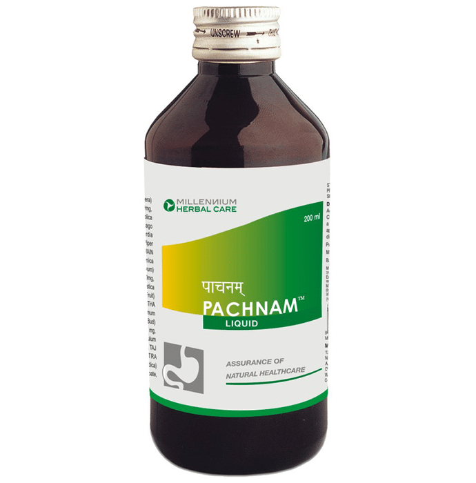 Millennium Herbal Care Pachnam Liquid (200ml Each) Millennium Herbal Care Pachnam Liquid is an excellent combination of potent digestive and appetizer herbs like Plumbago zeylanica (Chitrak), Cyperus rotundus (Nagarmotha) and erminalia chebula, T. belerica, emblica officinalis (Triphala). It effectively stimulates and activates the release of endogenous enzymes of the liver, pancreas and intestine that aids in digestion, assimilation and absorption of nutrients. It helps in curing stomach problems like indigestion, gas and bloating.