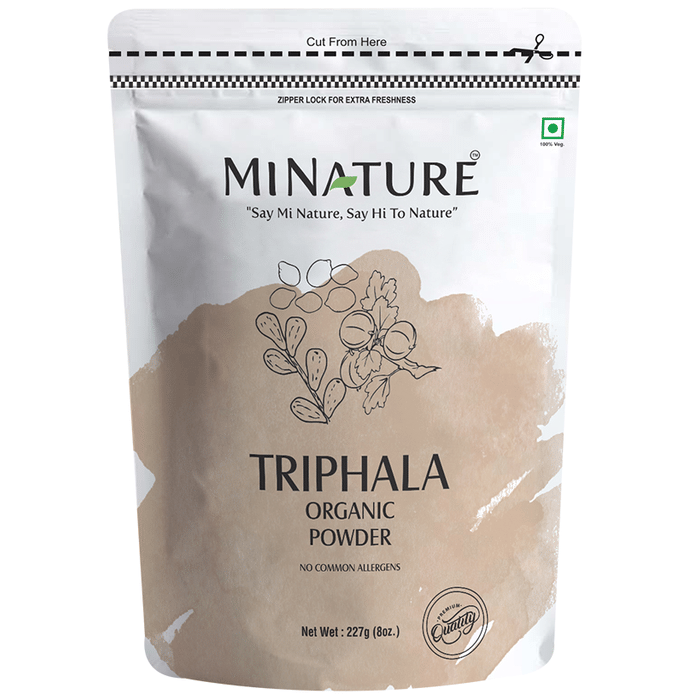 Minature Triphala Organic Powder is an ancient herbal remedy with antioxidant, anti-inflammatory, and antibacterial effects. Triphala may have various health benefits, such as improving oral and digestive health and supporting skin healing. Triphala is a herbal preparation used in ayurvedic medicine. Triphala contains powerful anti-inflammatory compounds that may help protect against certain cancers and other chronic diseases. | Key Ingredients: Triphala powder | Key Benefits: It helps to ease constipation and flatulence It supports internal cleansing, nourishes and rejuvenates the tissues Act as a natural antioxidant It supports the immune system | Directions For Use: Add 1 tablespoon of triphala powder to a glass of water and leave it overnight Drink the concoction in the morning or as directed by the physician | Safety Information: Read the label carefully before use Do not exceed the recommended dosage Store in a cool and dry place away from direct sunlight Keep out of reach of children