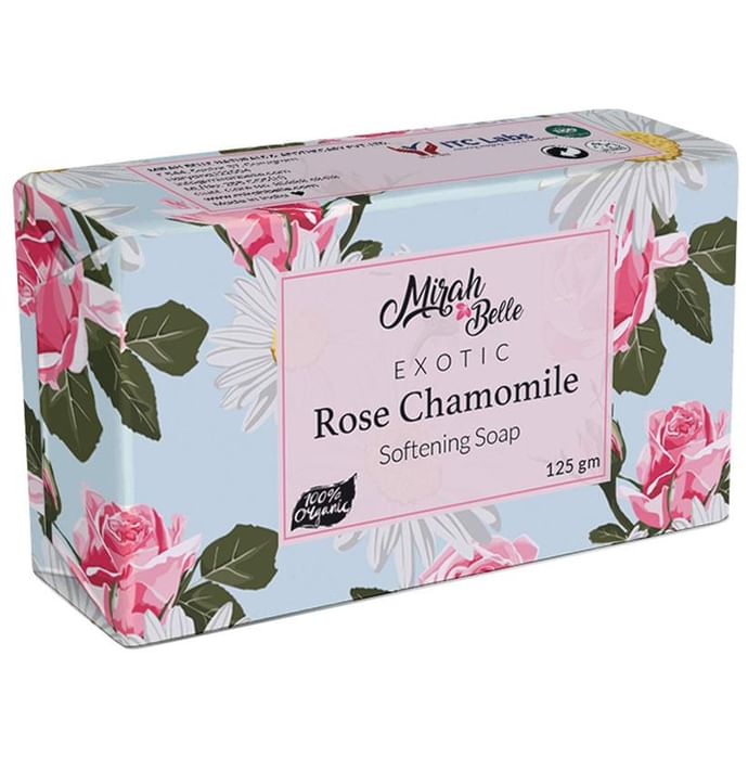 Mirah Belle Exotic Soap (125gm Each) Rose Chamomile Mirah Belle Exotic Soap Rose Chamomile can be helpful for dry skin that does not retain moisture. Rose essential oil can help nourish and hydrate dry skin. Chamomile extract may help reduce inflammation and the appearance of fine lines. Pink French clay may aid in the detoxification of the skin. This vegan soap is free from paraben, cruelty, SLS, sulphate and silicone.