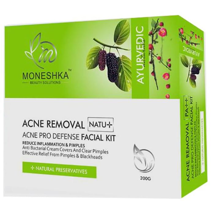 Moneshka Acne Removal Facial Kit Moneshka Facial Kit is suitable for acne prone skin. The facial helps in retaining moisture in the skin as well as increasing flexibility and smoothness . Nourishes the skin to give it that natural glow. It revitalizes your face and instantly gives you that luminous and radiant complexion.