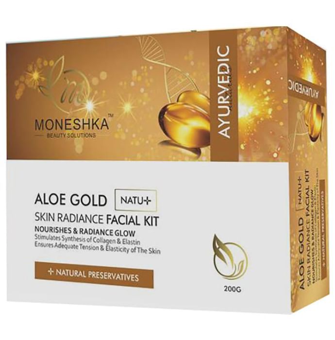 Moneshka Aloe Gold Facial Kit Moneshka Facial Kit is suitable for acne prone skin. The facial helps in retaining moisture in the skin as well as increasing flexibility and smoothness . Nourishes the skin to give it that natural glow. It revitalizes your face and instantly gives you that luminous and radiant complexion.