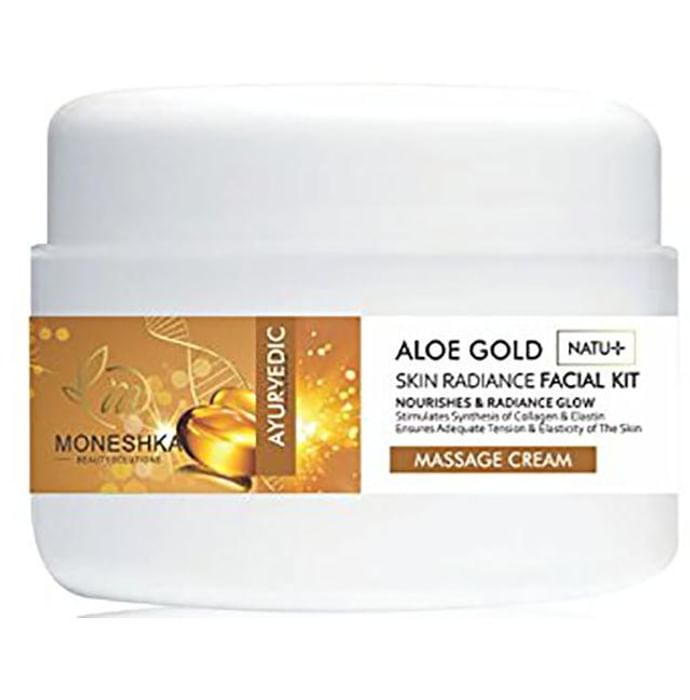 Moneshka Aloe Gold Massage Cream Moneshka Massage Cream is designed to nourish and moisturize the skin. The ingredients present in the product are helpful in reducing fine lines, wrinkles, dark spots, and blemishes. In addition to this, it comes in three different variants namely, Aloe Gold, Spotlight, and Acne Removal.