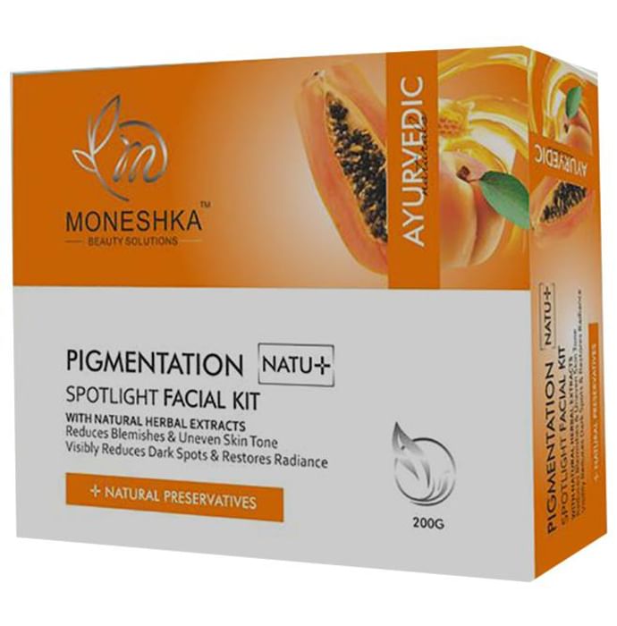 Moneshka Pigmentation Facial Kit Moneshka Facial Kit is suitable for acne prone skin. The facial helps in retaining moisture in the skin as well as increasing flexibility and smoothness . Nourishes the skin to give it that natural glow. It revitalizes your face and instantly gives you that luminous and radiant complexion.