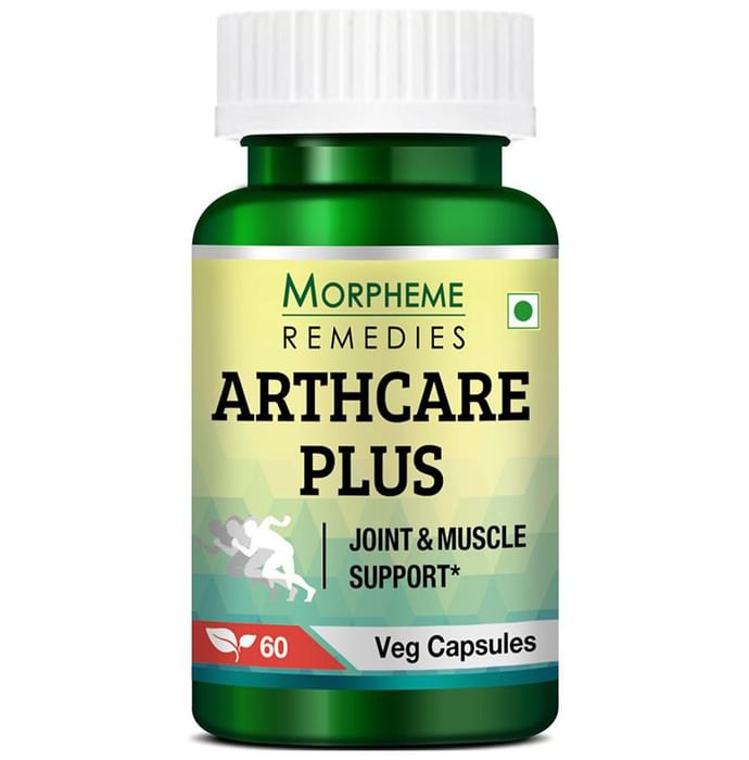 Morpheme Arthcare Plus Capsules are enriched with essential herbal ingredients such as Guggul (Commiphora mukul) extract, Rasna (Pluchea lanceolata), Shallaki (Boswellia serrata) extract, Nirgundi (Vitex negundo), Himalayan cedar (Cedrus deodara) extract, Trikatu Extract, Gokshur (Tribulus terrestris) extract, purified Strychnos nux-vomica extract. These herbs efficiently work for the betterment of the joint mobility and flexibility. It supports the repairing of damaged cartilage cells and its regeneration which are the essential building units for new fibrous connective tissue in our body. Morpheme Arthcare Plus helps in maintaining the proper balance of three dynamic forces in our body or three doshas which are vata, kapha and pitta. Morpheme Arthcare Plus Capsules is recommended in arthritis, Normal joint pain, Bone and muscle pain, Rheumatoid arthritis, Ankylosing and cervical spondylosis, Osteoarthrosis or degenerative joint disease, Gout, Sciatica pain, Backache, Fibromyalgia, Injuries involved in athletics, Several persistent inflammatory conditions of bone joints. Direction for use: 1 Capsule thrice daily after meals. Use under medical supervision