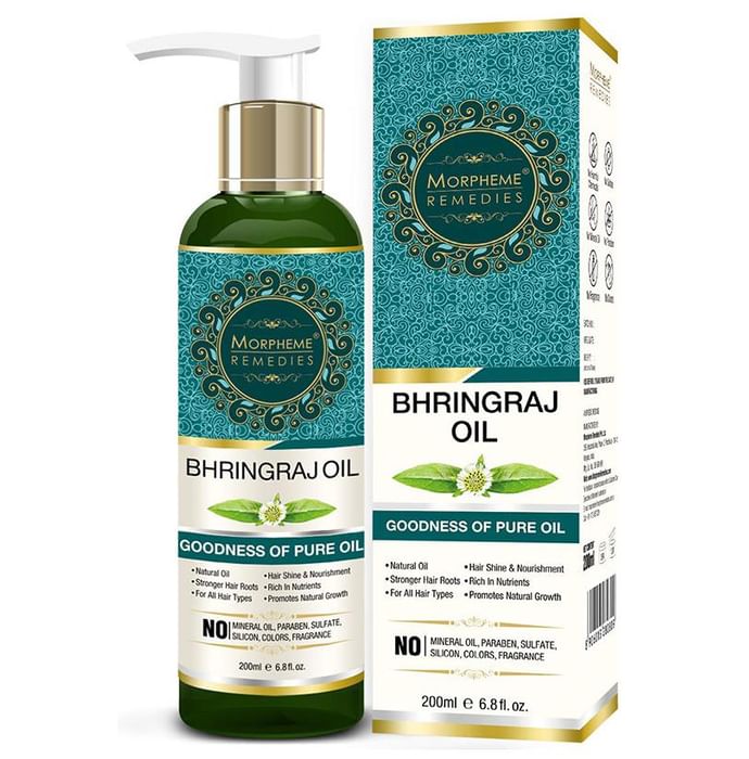 Morpheme Pure Bhringraj Hair Oil contains Pure Bhringraj Coldpressed Oil (Eclipta alba) as its main ingredient. Morpheme Pure Bhringraj Hair Oil is useful in case of premature graying of hair and to promote natural hair growth. Regular use of this oil helps restore the natural texture of your hair and adds luster, volume, and color. It also benefits those who suffer from dandruff, premature balding and dryness of the scalp. It nourishes the scalp and prevents split ends. Key benefits of Morpheme Pure Bhringraj Hair Oil: It helps nourish and rejuvenate hair follicles and prevents discoloration of hair. Nourishes scalp and hair root to promote hair growth Vitamins, fatty acids, essential minerals, and nutrients rich Morpheme Pure Bhringraj Hair Oil works great in cooling your body and restoring moisture to your skin. Perfect for all types of hair and skin. No mineral oil, paraben, sulphate, silicon, colors & fragrance. The direction of use: Apply oil on tip of your fingers and rub it gently on the base of your hair enabling it to penetrate into the roots of your hair. Leave it overnight or for few hours. Wash with your regular shampoo or prefer a natural shampoo. Your hair will look sensational and shiny.