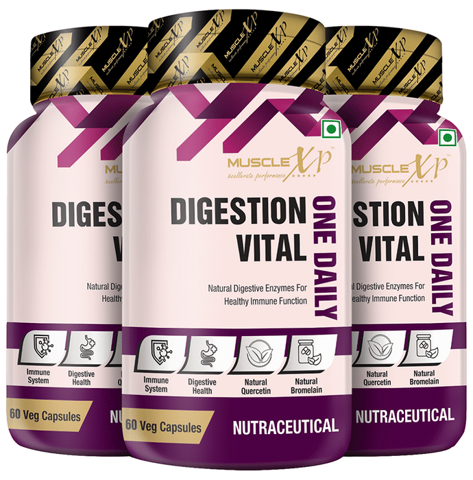MuscleXP Digestion Vital One Daily Veg Capsule (60 Each) MuscleXP One Daily Digestion Vital Veg Capsule (60 Each) is a blend of quercetin and bromelain promotes a healthy lifestyle. It may also strenghten your immune system. It is also enriched with natural digestive enzymes that keep your digestive system healthy and boost your energy levels which may enhance your overall performance.It also helps you to deal with nutrient deficiencies