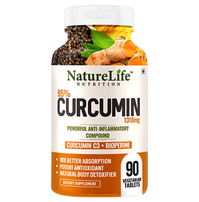 Nature Life Nutrition 95% Curcumin 1310mg (Curcumin C3+Bioperine) Vegetarian Tablet provides the goodness of curcumin, the primary active compound of turmeric that has anti-inflammatory and antioxidant properties associated with tremendous health benefits. Similarly, Bioperine is an extract from black pepper that is a host to health benefits. Unfortunately, curcumin alone is not sufficient to provide all the essential advantages. Thus, you have to consume it along with Black Pepper to get the most out of it and improve your health. Keeping this natural system in mind, Nature Life Nutrition has carefully curated Curcumin with Bioperine tablets that manage inflammation, combats infections, strengthens immune health, and supports bone health. A 10X better absorption formula to keep you hail and hearty! | Key Ingredients: Curcuma Longa Root Curcumin Bioperine (Piperine) | Key Benefits: Allows 10x better absorption Works as a potent antioxidant A natural body detoxifier | Directions For Use: As directed by the dietician and nutritionist. | Safety Instructions: Read the label carefully before use Store in a cool dry place away from direct sunlight Keep out of reach of the children Use under medical supervision