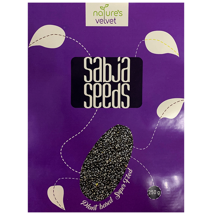 Nature's Velvet Sabja Seeds are full of iron, calcium, magnesium, vitamin K and protein. These seeds act as a stress reliever and are good for skin infections. | Key Ingredients: Sabja seeds | Key Benefits: Sabja seeds are full of iron, calcium, magnesium, vitamin K and protein Help and aids in digestion Acts as a stress reliever and is good for skin infections Used in desserts such as falooda/faluda Sabja seeds are most nutritious when soaked in water and consume | Directions For Use: Soak 1 tablespoon of sabja seeds in a glass of water for about 15 minutes. You can drink the water with seeds or add them to lemon water or in buttermilk, milk or curd. | Safety Information: Read the label carefully before use Keep out of reach of the children Store in a cool dry place