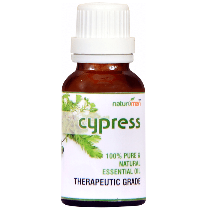 Naturoman Cypress Pure and Natural Essential Oil helps transitioning through difficult times in life and helps in the flow of stagnant energy. The oil of Cypress has a relaxing herbaceous, clean, spicy and masculine fragrance aroma said to induce feelings of security, grounding and nostalgia. | Key Ingredients: Cypress Essential Oil | Key Benefits: Stimulating feelings of happiness and ease Inducing calm, removing mental & psychic blocks Purifying, protecting & refreshing effects on the mind, instilling strength & wisdom Pacifying when recovering from shock, trauma, or major setback in life Meditating though difficult transitions and painful changes Promote spiritual understanding, acts as a tonic to the soul | Direction For Use: Use Naturoman Cypress Pure and Natural Essential Oil as directed by the physician. | Safety Information: Read the label carefully before use Store in a cool and dry place, away from sunlight Avoid eating tobacco or drinking alcohol during the course Keep out of the reach of children