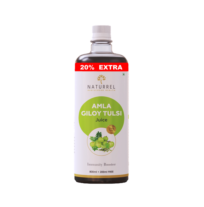 Naturrel Amla Giloy Tulsi Juice Naturrel Amla Giloy Tulsi Juice It is a herbal concoction enriched with the goodness of amla, giloy and tulsi that help boost your immunity and promote your overall health. These potent herbs are rich in antioxidants, which help protect the body against infections. The herbal juice helps purify blood and detoxify your body. It can help promote the healthy functioning of the liver.