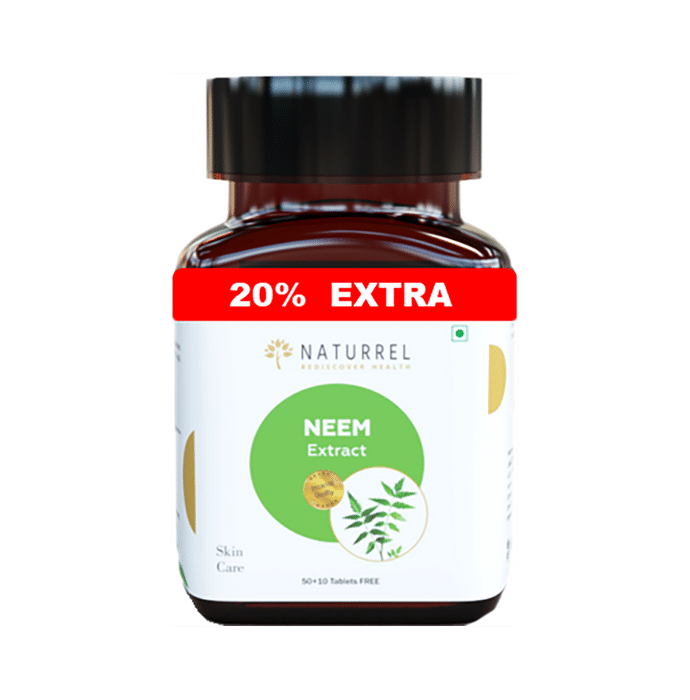 Naturrel Neem Extract Tablet It is a dietary supplement formulated with neem extract that helps promote healthy skin and fight skin problems. The antibacterial properties of neem can help fight acne-causing bacteria and prevent acne. Neem works as a blood purifier and helps your body get rid of toxins. | Key Ingredients: Neem extract | Key Benefits: It is a dietary supplement formulated with neem extract that helps promote healthy skin and fight skin problems The antibacterial properties of neem can help fight acne-causing bacteria and prevent acne Neem works as a blood purifier and helps your body get rid of toxins It can help protect against fungal, bacterial and viral infections It also helps prevent skin diseases and fight acne and breakouts Neem can help pacify and soothe irritated skin | Directions For Use: Take 1-2 tablets twice a day or as directed by your physician | Safety Information: Read the product label carefully before use Store in a cool and dry place away from direct sunlight Keep out of reach of children Always consult a physician before taking any dietary supplement If you are a pregnant or lactating mother, then please consult the doctor before taking the supplement Do not exceed the recommended dosage Discontinue use if adverse reactions occur Do not use if the product appears to be tampered with or the seal is broken Shelf life: 2 years