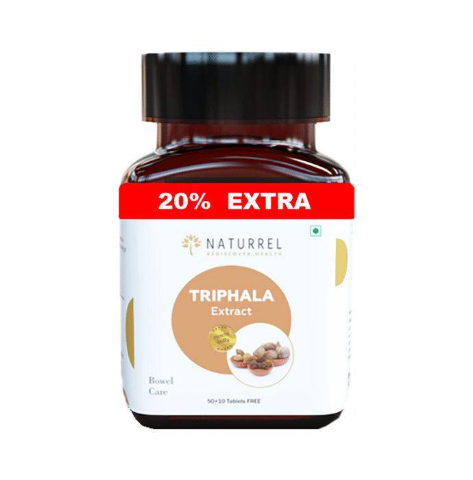 Naturrel Triphala Extract Tablet Naturrel Triphala Extract Tablet It is a dietary supplement formulated with triphala extract that helps support bowel movements and relieve constipation. Triphala is a powerful detoxifier, which helps flush out toxins from the stomach, small intestine and large intestine. Triphala has analgesic, antibacterial, anti-arthritic, hypoglycemic, anti-ageing, antiviral and anti-inflammatory properties. It can help improve your appetite and digestion.