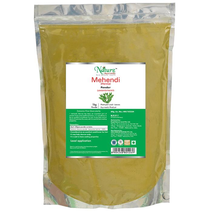 Naturz Ayurveda Mehendi Powder Naturz Ayurveda Mehendi Powder is an ayurvedic product which has been formulated to control dandruff and clear the scalp well. It has been known as an excellent hair conditioner. It promotes the growth of the hair and nourishes them.