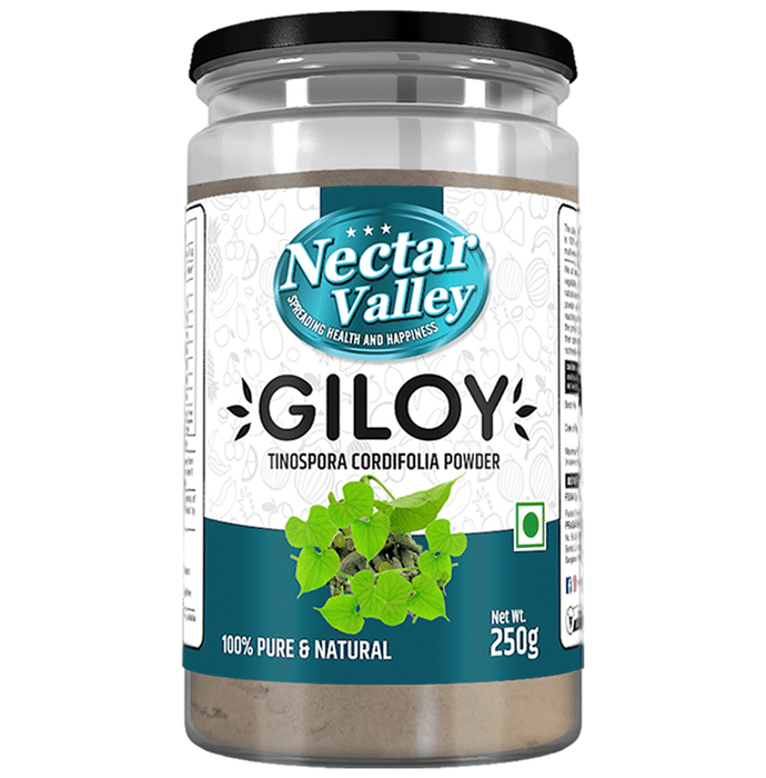 Nectar Valley Giloy Tinospora Cordifolia Powder Nectar Valley Giloy Tinospora Cordifolia Powder can help reduce fever, digestive issues, and stress. It may help treat respiratory issues and aid in detoxification. Giloy may also support better vision, control blood sugar levels, and provide relief from arthritis and gout pain.