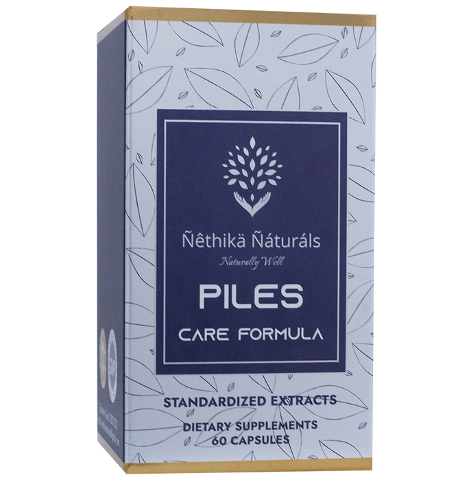 Nethika Naturals Piles Care Formula Capsule Nethika Naturals Piles Care Formula Capsule helps to alleviate the symptoms of haemorrhoids. It supports the healthy functioning of digestive organs as well as provides relief from constipation. It contains Kanchnar extracts, which help to promote digestive fire, avoid constipation, and reduce Piles mass enlargement. It also contains black cumin, which is rich in fibre and functions as a laxative as well as assisting in the repair of piles.