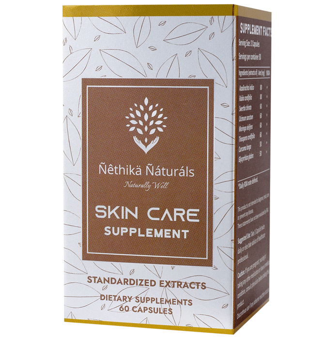 Nethika Naturals Skin Care Supplement Capsule Nethika Naturals Skin Care Supplement Capsule helps to detoxify the blood and give you radiant, soft, and plump skin. It protects the skin from oxidative stress and helps to reduce acne outbreaks as well as black and whiteheads. It contains Moringa, which contains vitamins A and E and hydrates the skin while also soothing irritation and reducing sunspots. It also contains Manjistha, which is used to reduce the number of skin problems like acne, infections and wounds.