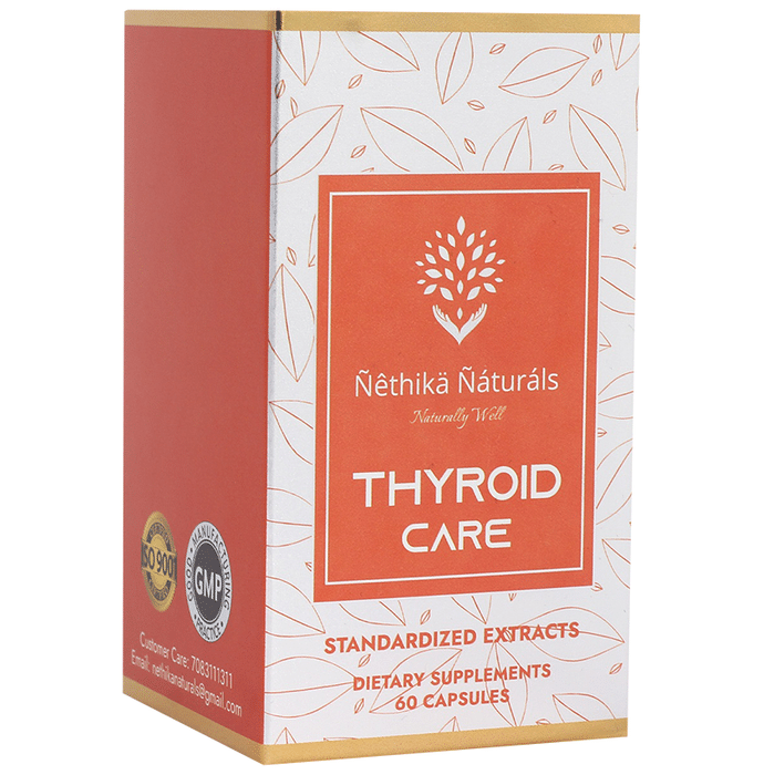 Nethika Naturals Thyroid Care Dietary Supplements Capsule Nethika Naturals Thyroid Care Dietary Supplements Capsule helps to keep the thyroid healthy and protects it from oxidative stress. It helps to increase low serum T3 and T4 levels. T3 levels that are higher help to reduce LDL cholesterol and aid in weight loss. It contains Brahmi, which aids in the treatment of hyperthyroidism and the detoxification of the nervous system.