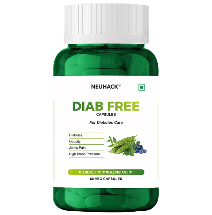 Neuhack Diab Free Veg Capsule Neuhack Diab Free Veg Capsule is a useful supplement, these capsules help in maintaining normal blood sugar levels. They help in diabetes management and possess herbs that are capable of increasing insulin content in the body. It helps in maintaining a healthy lipid level which improves the quality of life.