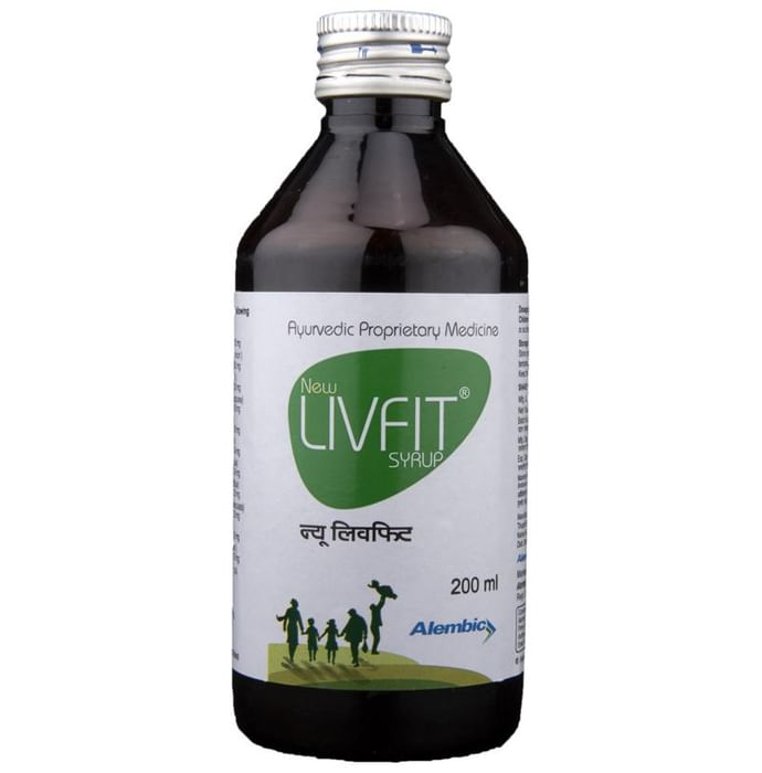 New Livfit Syrup is a hepato protective which contains Eclipta alba, Phyllanthus niruri, Rheum emodi, Tephrosia purpurea, Cichorium intybus, Tinospora cordifolia, Terminalia chebula, Boerhaavia diffusa, Andrographis paniculata, Picrorrhiza kurroa, and Fumaria officinalis. Role of active ingredients in New Livfit Syrup: Eclipta alba helps to expel body toxins, helps to detoxify liver and body. Phyllanthus niruri, Rheum emodi and Tephrosia purpurea is used to relieve kidney stones, gall bladder ailments, hepatitis. Cichorium intybus plant is medicinally beneficial in relieving sluggishness of the liver, biliary stasis, jaundice, enlargement of spleen. Tinospora cordifolia and Terminalia chebula has hepatoprotective, cholesterol-reducing, and antioxidant properties. Boerhaavia diffusa and Andrographis Paniculata helps in improvement of liver functioning, has hepatoprotective activity and relieves symptoms of jaundice. Picrorrhiza kurroa and Fumaria officinalis is used for yellowed skin jaundice, sudden liver infections caused by a virus. New Livfit syrup is used as hepatoprotective. New livfit syrup is used in: Acute and chronic hepatitis, Jaundice, Fatty degeneration of liver Cirrhosis, Liver damage due to alcohol hepatotoxic drugs, Anorexia and indigestion. Use under medical supervision.