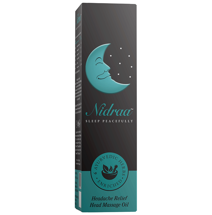 Nidraa Headache Relief Oil Nidraa Headache Relief Oil is empowered with 6 ayurvedic herbs and essential oil. Regular use of migraine oil and roll-on helps to control migraine, as a unique formulation works from within to reduce the effects of the migraine headache and helps you sleep peacefully.