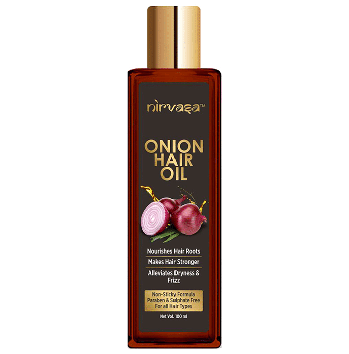 Nirvasa Onion Hair Oil Nirvasa Onion Hair Oil gives deep nourishment to the hair, helps to strengthen the hair roots, improves blood circulation and protects the hair from bacterial infections. Nirvasa Onion Hair Oil brings with it, added benefits of natural ingredients which have proven hair revitalizing properties.