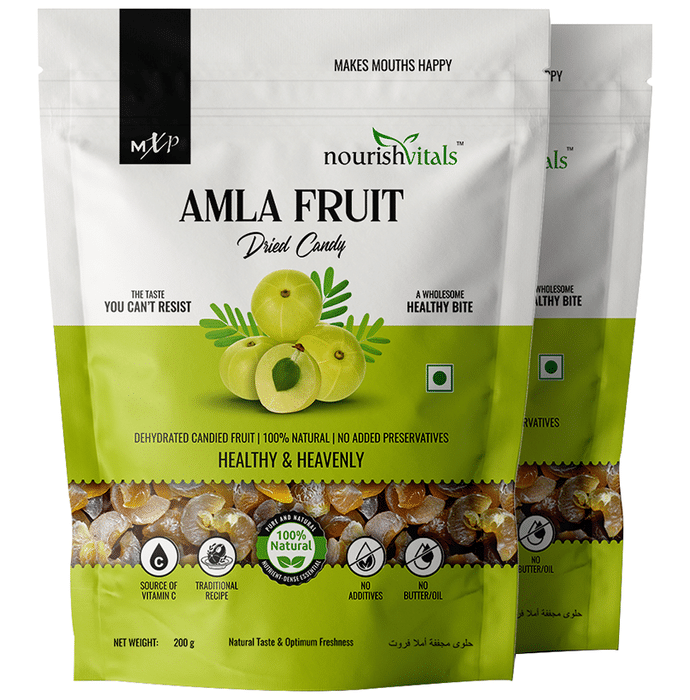 NourishVitals Amla Fruit Dried Candy (200gm Each) NourishVitals Amla Fruit Dried Candy Sourced directly from the farm, handpicked and dried under optimum conditions these dried amla candies involve fresh ingredients to happily serve you and your family. Amla is known to be the natural detoxifier that helps flush out toxins to keep you healthy and fit in the long run. It contains vitamin C, an innate immunity booster that is also good for your overall development. It is a holistic supplement with divine properties in favour of skin, body and hair. Being rich in vitamin C, it is a natural source of antioxidants for your body. The fresh, seasonal fruit also helps improve digestion and metabolism.