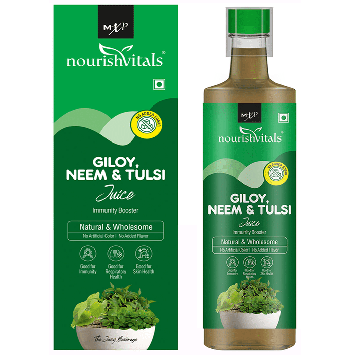 NourishVitals Giloy, Neem & Tulsi Juice NourishVitals Giloy, Neem & Tulsi Juice is a natural health tonic which helps in making your body healthy. It does have multiple health benefits starting from improving your immunity power. It contains tulsi which is considered to be helpful for your respiratory system. This vegetarian drink is free of chemicals and is also ideal for promoting healthy skin.