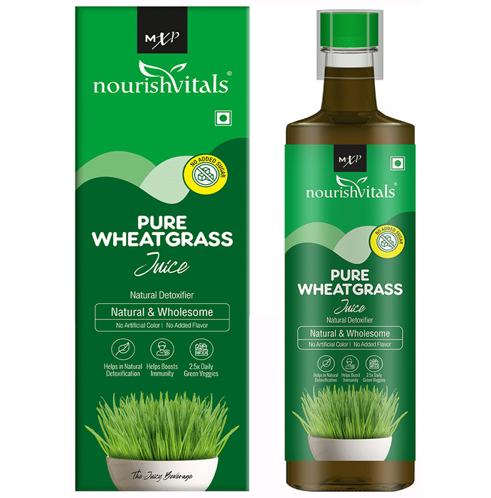 NourishVitals Pure Wheatgrass Juice NourishVitals Pure Wheatgrass Juice is a blend made with the leaves of fresh wheatgrass which provides your body with multiple benefits. It contains all the essential nutrients and also improves your immunity power. It is rich in vitamins A, C, E, K, and B-complex which have a positive effect on your body. This organic juice gives you a refreshing start to your day. It also keeps you healthy and gives your skin the glow it needs.
