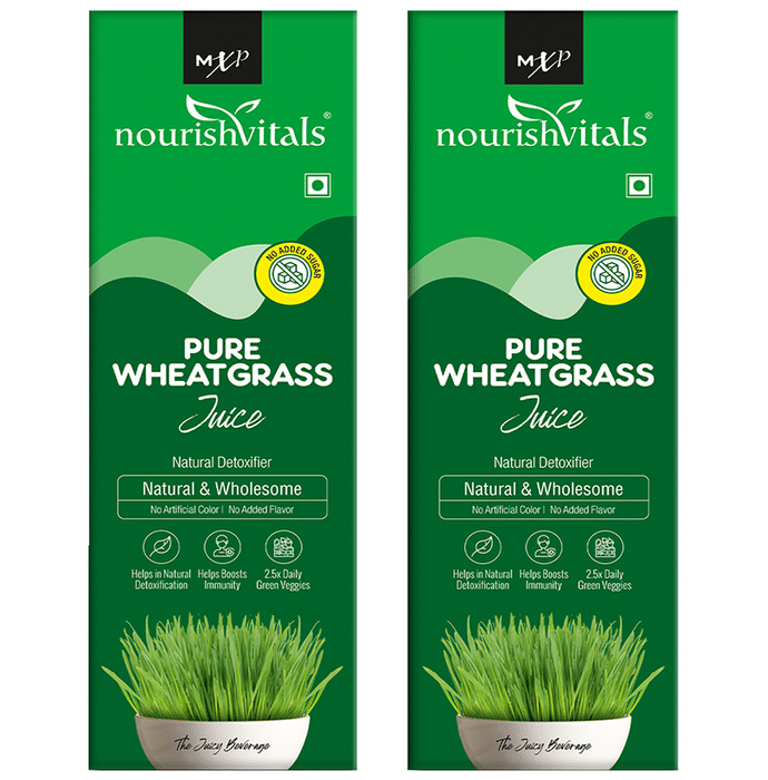 NourishVitals Pure Wheatgrass Juice helps to keep your inside cleaner by flushing out the toxic and harmful deposits. It is a rich source of antioxidants and has anti-inflammatory properties. It can also boost your immune system and keep your skin and hair healthy. | Key Ingredients Wheatgrass juice | Key Benefits: Chlorophyll and other antioxidants in wheatgrass juice help to give your skin, hair and body a healthy look It is free from oils, seeds and various other kinds of impurities It can also boost immunity. It also detoxifies and cleanses your system from inside It has no added sugar and is good for your digestive health | Directions For Use: Mix 30mL of amla juice in a glass of water Gulp it down on an empty stomach to get a strong immunity | Safety Information: Store in a cool and dry place away from direct sunlight Read the label carefully Keep out of reach of children Use under medical supervision