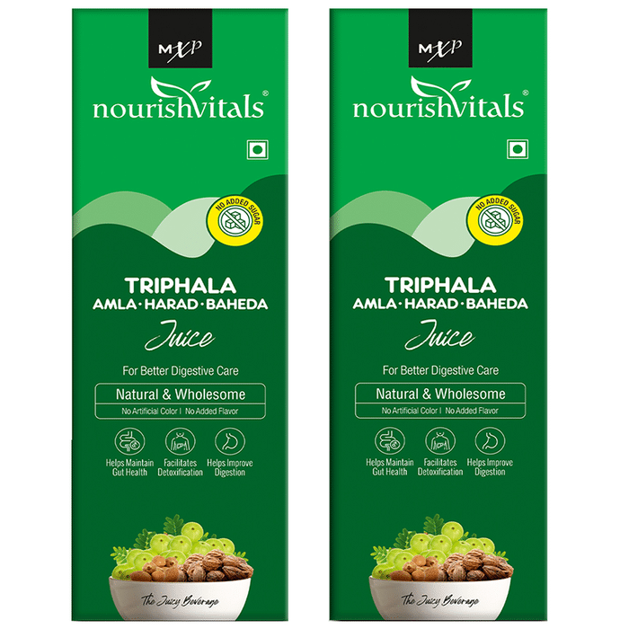 NourishVitals Triphala Juice (500ml Each) NourishVitals Triphala Juice Triphala is also referred to as polyherbal medicine as it is derived from the mixing of three dried fruits . It helps to cleanse and detoxify the body. It also contains amla that is rich in vitamin C, amino acids, minerals and has antioxidants. It can reduce inflammation and keeps your digestive system healthy. It can also be beneficial for weight loss.