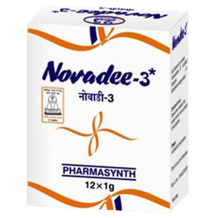 Novadee 3 sachet contains Cholecalciferol (Vitamin D3). Vitamin D3 is essential for the proper growth and development of the body. It is synthesized within the body after exposure to sunlight and is essential for many important functions of the human body. Vitamin D3 also increases the Calcium absorption from the intestines. The Powder is available commercially in the form of sachets containing granules of cholecalciferol (Vitamin D3). Each sachet weighs about one gram and contains 60,000 international units of cholecalciferol. Direction for use: Tear open the sachet. Pour the powder into a glass and then add water. Drink the mixture. Novadee 3 sachet is a nutritional supplement which can be taken by people who have low levels of calcium in their blood. Dosage: As directed by the Physician Use under medical supervision.