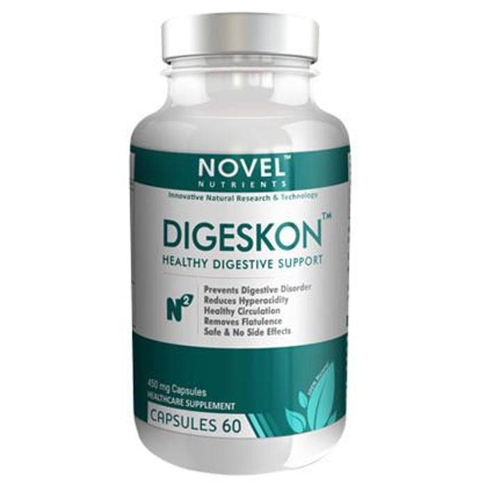 Novel Nutrients Digeskon 450mg Capsule Novel Nutrients Digeskon 450mg Capsule It prevents Digestive Disorder and reduces Hyperacidity. It helps in maintaining a healthy Circulation and removes Flatulence. It is safe and has no side-effects.