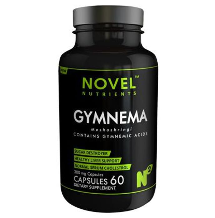 Novel Nutrients Meshashringi (Gymnema) 300mg Capsule is a convenient supplement that provides gymnemic acids. Gymnemic acids are the active compounds‚ which promote the healthy functioning of pancreatic cells. The pancreas is responsible for secreting digestive enzymes in order to break down the proteins‚ fats and carbohydrates. It is used across the globe by diabetic patients for its manifold benefits in controlling and bringing down blood sugar levels. | Key Ingredients: Gymnema sylvestre | Key Benefits: It promotes effective glucose utilization It aids healthy functioning of pancreatic cells It helps maintain normal blood sugar levels It acts as a sugar destroyer and supports healthy liver It helps in maintain normal serum cholestrol It supports a healthy appetite and helps to reduce sugar craving subsequently It is used across the globe by diabetic patients for its manifold benefits in controlling and bringing down blood sugar levels | Directions For Use: Take 1 capsule twice a day after meals or as directed by the physician. | Safety Information: Read the label carefully before use Store in a cool and dry place, away from sunlight Keep out of the reach of children Do not exceed the recommended dose