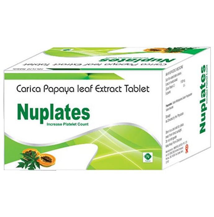 Nuplates Tablet Nuplates Tablet prepared with the goodness of carica papaya leaf extract, Nuplates Tablet is a promoter of immunity and wellness. It is filled with antibacterial and anti-diabetic properties.